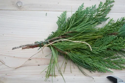 7. When you have reached the end of your twine tie the last bundle in the opposite direction to cover the exposed stems and for a finished look
