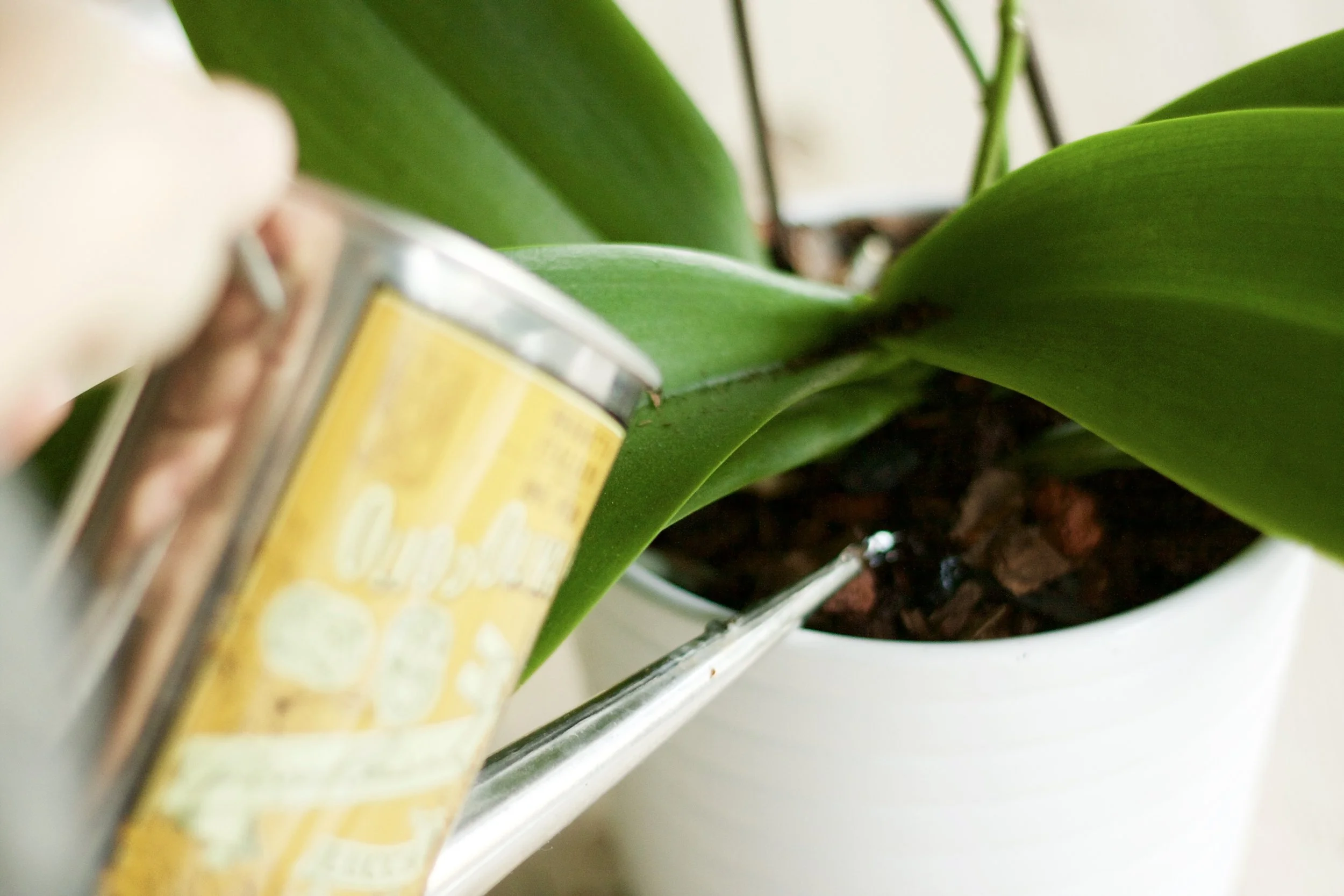 Step7: water so that the water flows down to the bottom of the pot. As the water evaporates the roots will soak in the water from the humidity in the air. Don’t fill up to where the roots are, just below. Orchid come from humid hot places. I’ve learned the hard way to not follow the “set an ice cube on the roots”, you just end up with frozen and dead roots. Follow these steps and you won’t have to worry about watering. The leaves will tell you when it needs water by starting to droop.