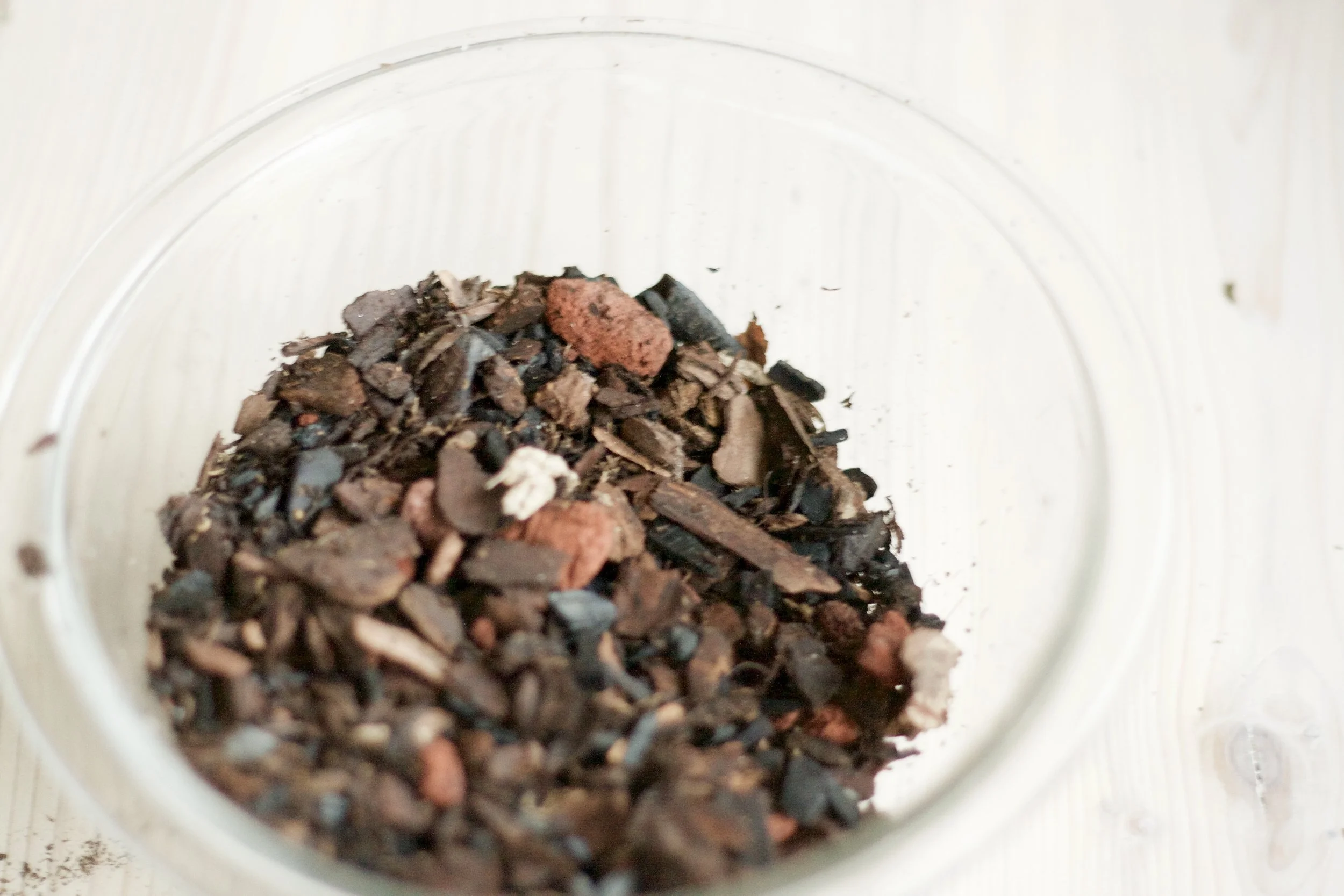 Step 6: Fill in and around the roots with the bark until it reaches the top of the pot