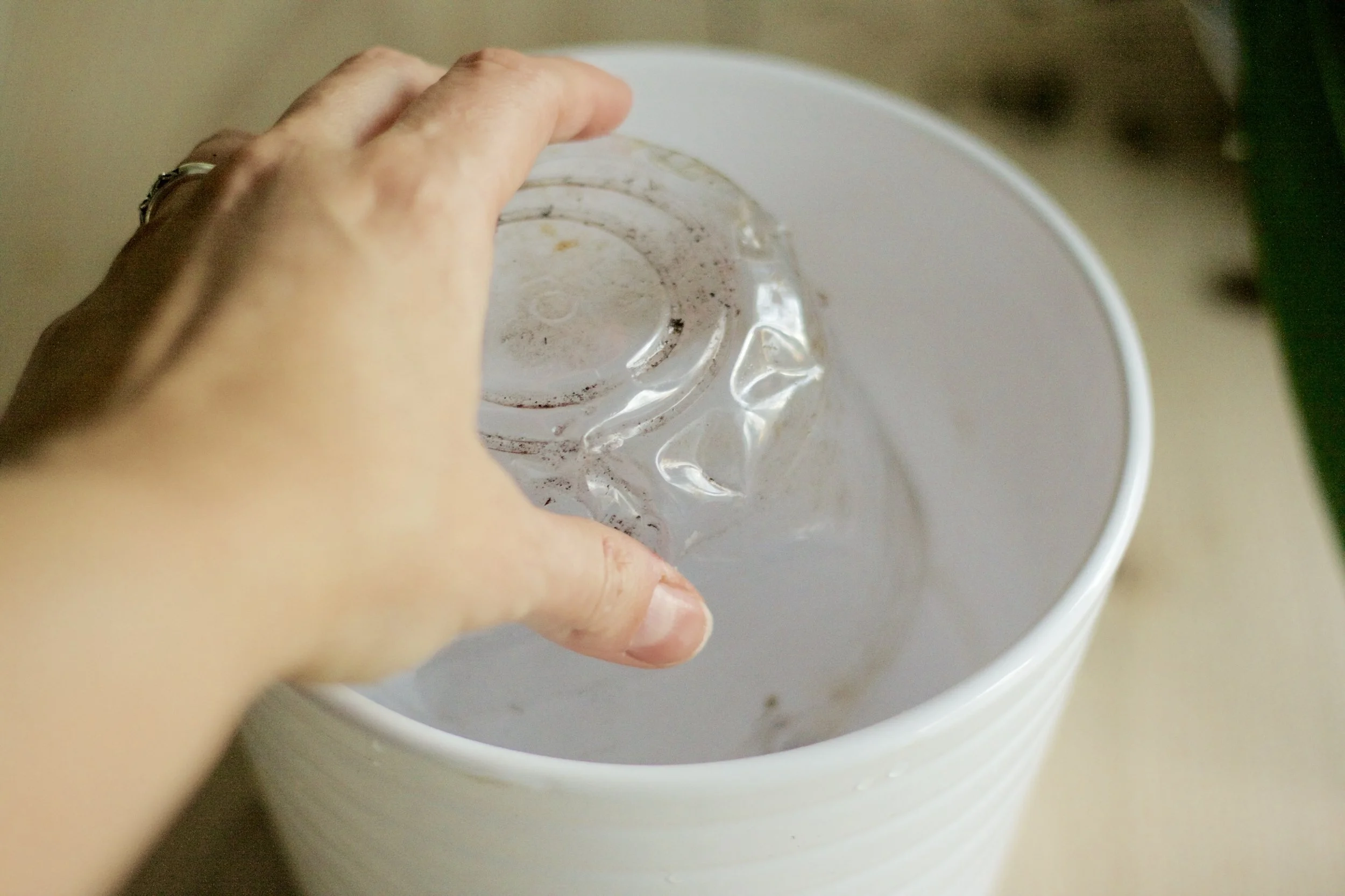 Step 3: turn your plastic cup upside down to make a platform for your orchid to sit on.